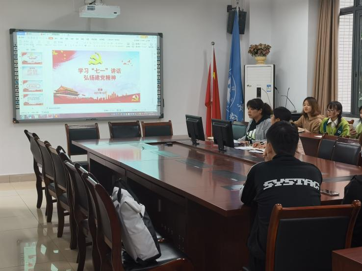 为认真学习贯彻习近平总书记“七一”重要讲话精神,推进党史学习教育走深走实。10月25日中午,yl34511线路中心党委专职组织员雷菁同志在田家炳404会议室为学生第一党支部全体党员讲授了以《学习“七一”讲话,弘扬建党精神》为题的党史学习教育专题党课。