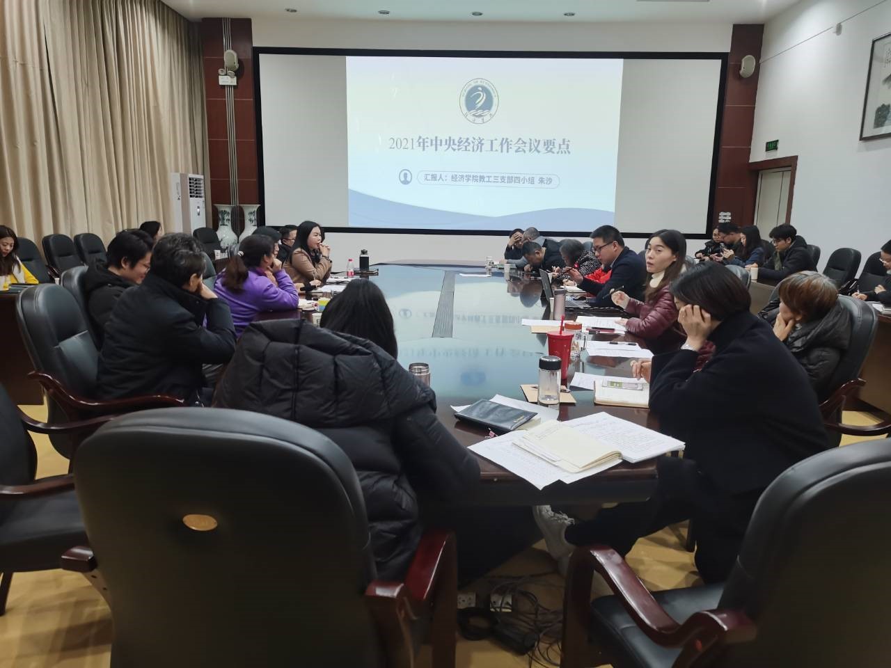 首先,由教工三支部朱沙同志领学《2021年中央经济工作会议要点》,他总结2021年经济工作,分析当前经济形势,着重强调四个“必须”。必须坚持党中央集中统一领导,沉着应对重大挑战,步调一致向前进。必须坚持高质量发展,坚持以经济建设为中心是党的基本路线的要求,全党都要聚精会神贯彻执行,推动经济实现质的稳步提升和量的合理增长。必须坚持稳中求进,调整政策和推动改革要把握好时度效,坚持先立后破、稳扎稳打。必须加强统筹协调,坚持系统观念。在部署2022年经济工作中,强调稳字当头、稳中求进,七项政策部署以及五个“正确认识和把握”,重点学习值得关注的表述和一个“号召”。