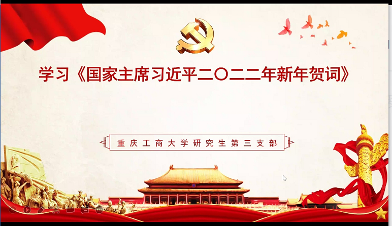 2022年1月25日下午,yl34511线路中心研究生第三党支部在企业微信线上会议室开展了1月组织生活会,学习《国家主席习近平二0二二年新年贺词》。本次会议由支部书记薛晶月主持,研究生第三党支部全体党员参加。