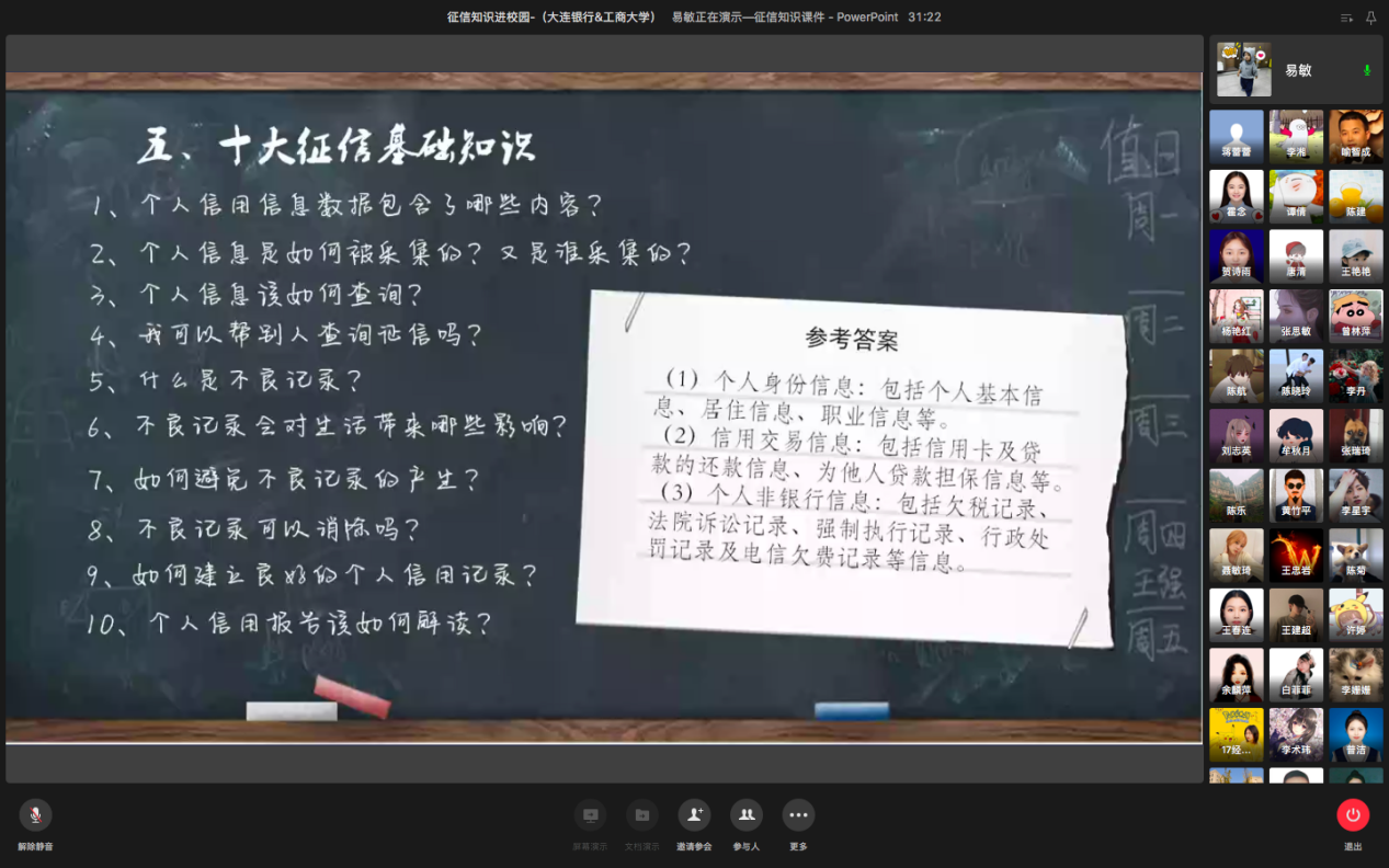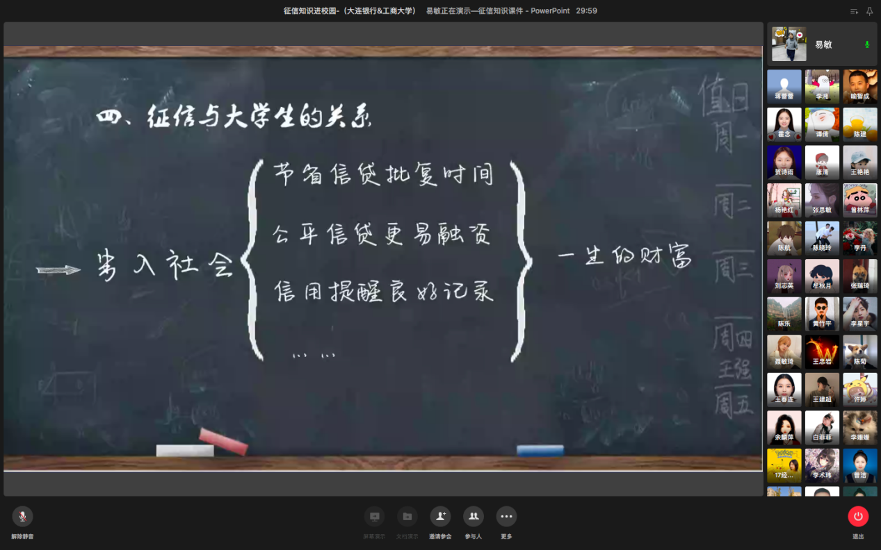 为帮助大学生了解个人征信知识,树立正确的消费观念,培养对非法校园贷辩别能力,2021年3月24日,yl34511线路中心联合大连银行重庆分行共同开展了一场别开生面的“网课”。由于受疫情影响,不适宜进行大规模聚集,学院与大连银行商议,将讲座移到线上,通过“直播课”的形式与同学们展开交流。资助办周良勇老师、学院资助联系人喻智成老师和200多位生源地贷款同学参加了本次交流会。