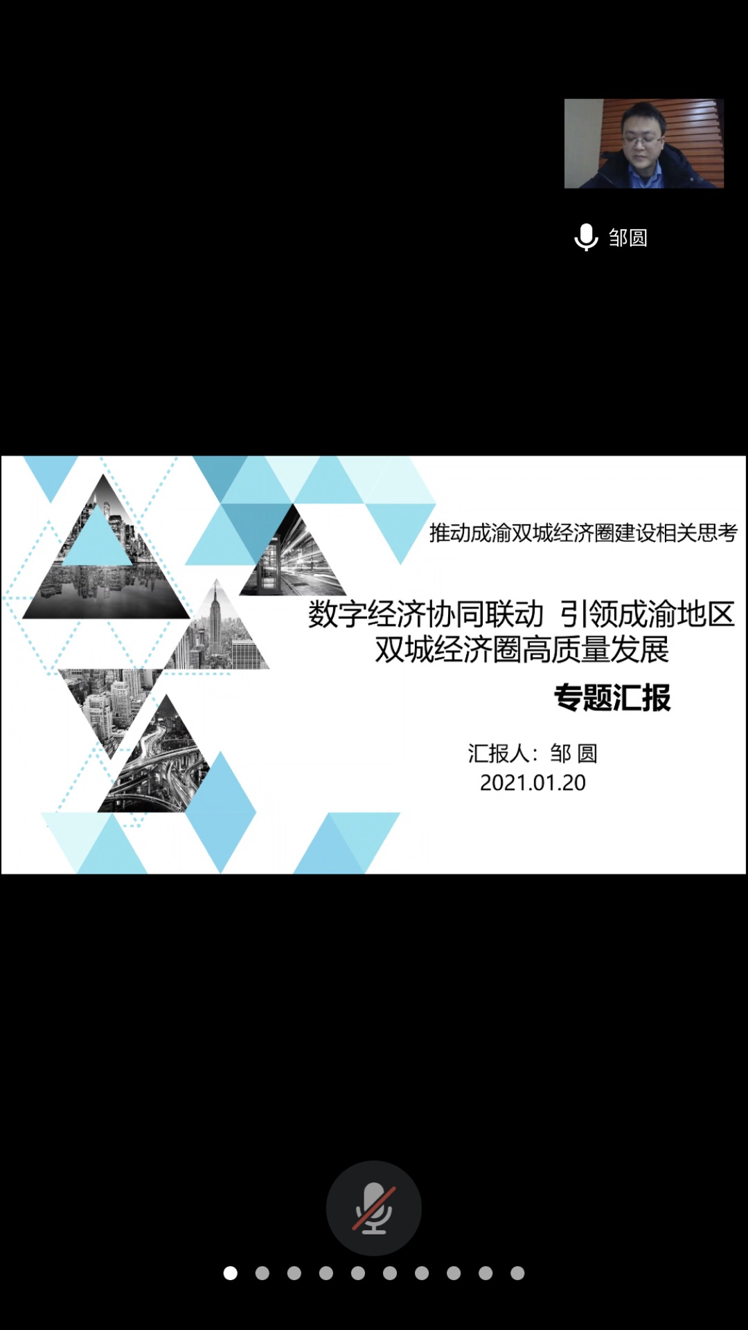 最后,雷菁委员和程卫民处长进行了总结发言。雷委员指出学校与政府机关开展支部联建活动,对于双方的党建工作具有重要意义,双方本着“共建支部、共享资源、共商活动、共同提高”的原则,重点围绕成渝经济圈建设,发挥各自组织优势和业务专长,通过共同开展学习教育、分析研究、聚智献策等活动,实现党的建设与业务工作深度融合。程卫民处长认为今天的视频连线是一次深化支部合作、检验联建成果的活动,是一次引智赋能聚力、互学互鉴互享的活动,更是一次助力川渝人社合作、助推成渝“经济圈”建设的活动。他感叹共建是跨界合作,开辟成渝经济圈建设新阵地;是引智聚力,助力川渝人社合作出新成果;是共建共筑,推动支部联建工作上新台阶。他对以后联建工作提了三点倡议,一是查漏补缺,加快完成共建任务,二是常联常新,深化支部联建工作,三是互助互建,推动双方事业发展。