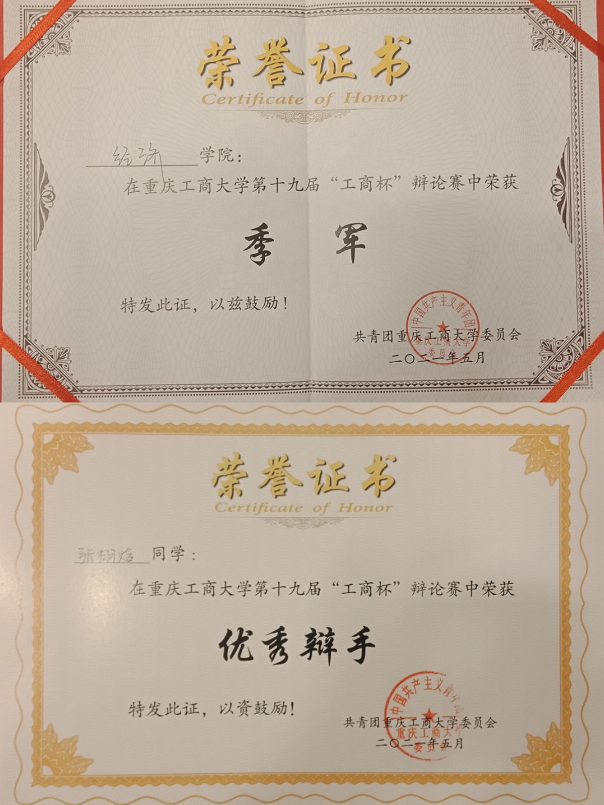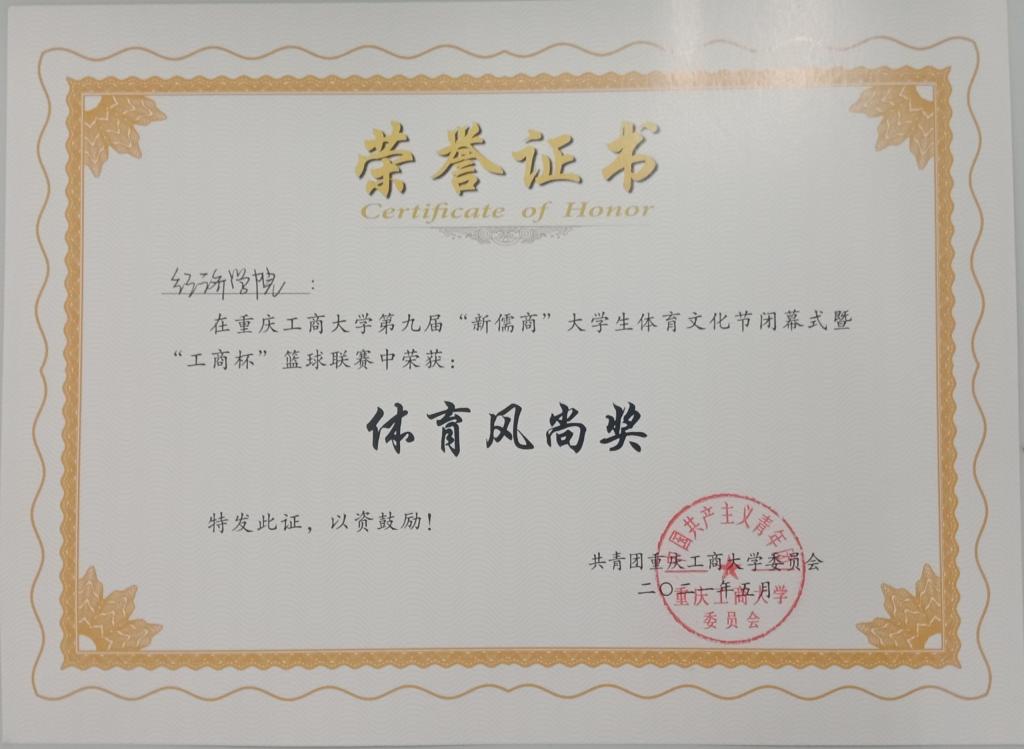 5月21日下午,由共青团重庆工商大学委员会主办的重庆工商大学第九届“新儒商”大学生体育文化节和第十九届“工商杯”辩论赛分别在重庆工商大学南区篮球场、博智楼7100圆满闭幕。yl34511线路中心学子在本次工商杯相关比赛中获得了可喜的成绩,分别获得了重庆工商大学第十九届“工商杯”辩论赛“季军”,重庆工商大学第九届“新儒商”大学生体育文化节之工商杯篮球联赛男子第五名“体育风尚奖”,重庆工商大学第九届“新儒商”大学生体育文化节暨第十二届“工商杯”足球联赛女子组“第七名”、男子组“体育道德风尚奖”。2018级贸易经济三班的张栩焓在重庆工商大学第十九届“工商杯”辩论赛中表现优异,荣获“优秀辩手”!