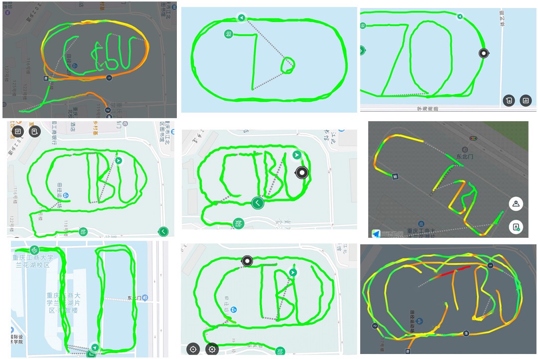 本次云上主题跑步活动不限跑步地点、时长,自由规划路线,在南岸校区、兰花湖片区、江北校区同时进行,来自各个学院的70名同学以线下跑步,线上打卡的方式进行本次跑步活动。田径场上、香樟林下、翠湖旁都能看到他们矫健的身姿。活动过程中,同学们释放激情,挥洒汗水,感受校园风光,陶冶情操,利用轨迹跑出了“CTBU”、“70”等字样,用脚步践行 “请党放心,强国有我”的青春誓言,以别样的方式表达了对学校七十周年庆的诚挚祝福。活动结束后,同学们纷纷表示“此次活动让大家在学习之余放松了自己,锻炼了身体,同时也更加深刻地感受到了学校深厚的文化底蕴。”体现出广大工商学子对学校强烈的认同感、归属感和自豪感。