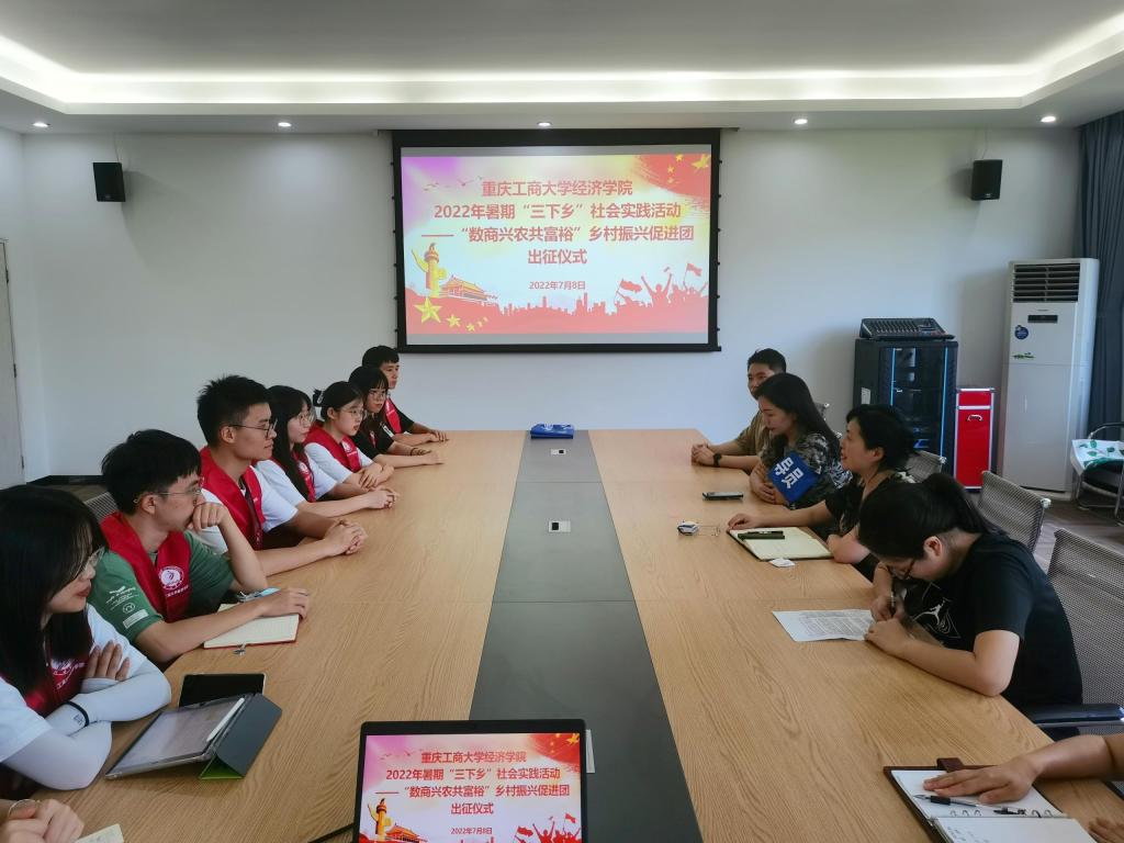 为深入学习宣传贯彻习近平新时代中国特色社会主义思想和党的十九届六中全会精神,贯彻落实习近平总书记关于青年工作的重要思想,深入学习习近平总书记在庆祝中国共产主义青年团成立100周年大会上的重要讲话精神,坚定信念听党话、跟党走,迎接党的二十大胜利召开,yl34511线路中心号召、组织全院学生开展2022年大学生志愿者暑期“三下乡”社会实践活动。7月8日上午,学院在田家炳406会议室举行了“数商兴农共富裕”乡村振兴实践团出征仪式,标志着学院2022年暑期“三下乡”社会实践活动正式启动。学院党委书记李自维教授,副书记、副院长王燕教授,实践团专业指导教师张驰博士及相关带队老师出席出征仪式。