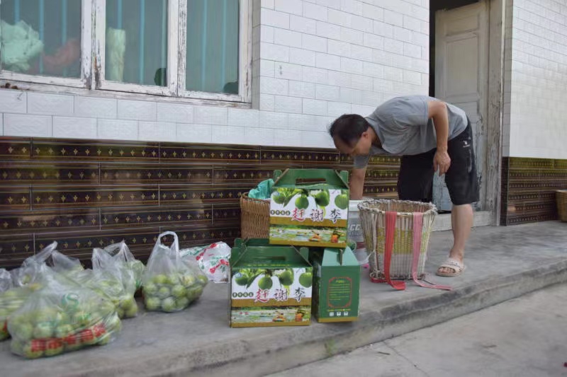 实践团成员先后与当地村干部交流访谈,与种植大户、村民走访调查,了解到盐河村作为第一批优秀示范村,结合当地海拔高、气候适宜、背风向阳、土壤肥沃疏松等条件,于2003年开始种植布朗李。赶水镇盐河村布朗李基地现今种植布朗李860亩,产量约为10万斤,这里种植的布朗李果大形美、核小肉厚、肉脆质密、风味香甜,被誉为"李中之王”。但是,盐河布朗李品牌知名度范围仅在重庆地区,销售渠道单一,销售距离近。