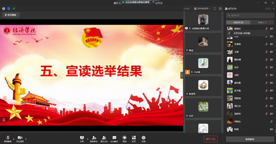 首先,主持人宣读了《关于同意成立yl34511线路中心学生会团支部的批复》,并向与会人员介绍了学院学生会团支部的基本情况。紧接着,按照《共青团章程》规定程序,大会以线上投票表决的方式审议通过了监票员、计票员和支部委员会候选人名单,随后,大会以无记名投票的方式选举王邦春、余明、张子璇为新一届学生会团支部委员会委员。经学院分团委批准,由王邦春同学担任团支部书记,余明同学担任组织委员,张子璇同学担任宣传委员。