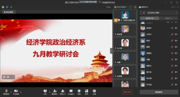 在随后的政治经济系教学研讨活动中,张筱璐副教授对《重庆工商大学商工融合发展建设方案》以及《重庆工商大学经济学拔尖人才培养示范基地建设方案》两个学校重要文件进行了深入解读:强调了重庆工商大学“商工融合”发展的1个目标——努力实现到2025年将学校建成“商工融合、多科协同,全国知名的财经类应用研究型大学”的奋斗目标;4大建设任务——推进学科交叉融合、推进教育教学的交叉融合、推进科学研究交叉融合、完善融合发展组织形式;明确了重庆工商大学经济学拔尖人才培养示范基地的3个建设目标——建成经济学青年英才培养基地,培养一批道德品行好、学术潜力大、创新能力强、综合素质优的经济学学界和业界领军人才,探索中国特色、国内一流的基础学科拔尖人才培养体系;8大建设内容——守正创新,构建人才培养管理新机制;能力塑造,建立拔尖人才培养新模式;凝聚优势,突出学科交叉融合新亮点;外引内培,彰显专业教师队伍新风貌;夯实基础,促进教学资源建设新突破;理实结合,学生素养培育迈上新台阶;双向互动,推动国际合作取得新成效;凝练特色,创新拔尖人才培养模式。林黎副教授对《重庆工商大学高水平新文科学校建设方案》进行了详细讲解,明确了1个建设目标——至2023年,学校初步建成示范效应强、教改成效多、具有鲜明财经特色的高水平新文科高校;6大建设内容——价值引领,承载文科凝心铸魂新使命;交叉融合,布局专业转型升级新方向;整合资源,重塑文科课程内容新体系;锐意实践,构建新文科人才培养新模式;名家引领,打造文科师资队伍新标识;持续改进,构建新文科特色质保新文化。