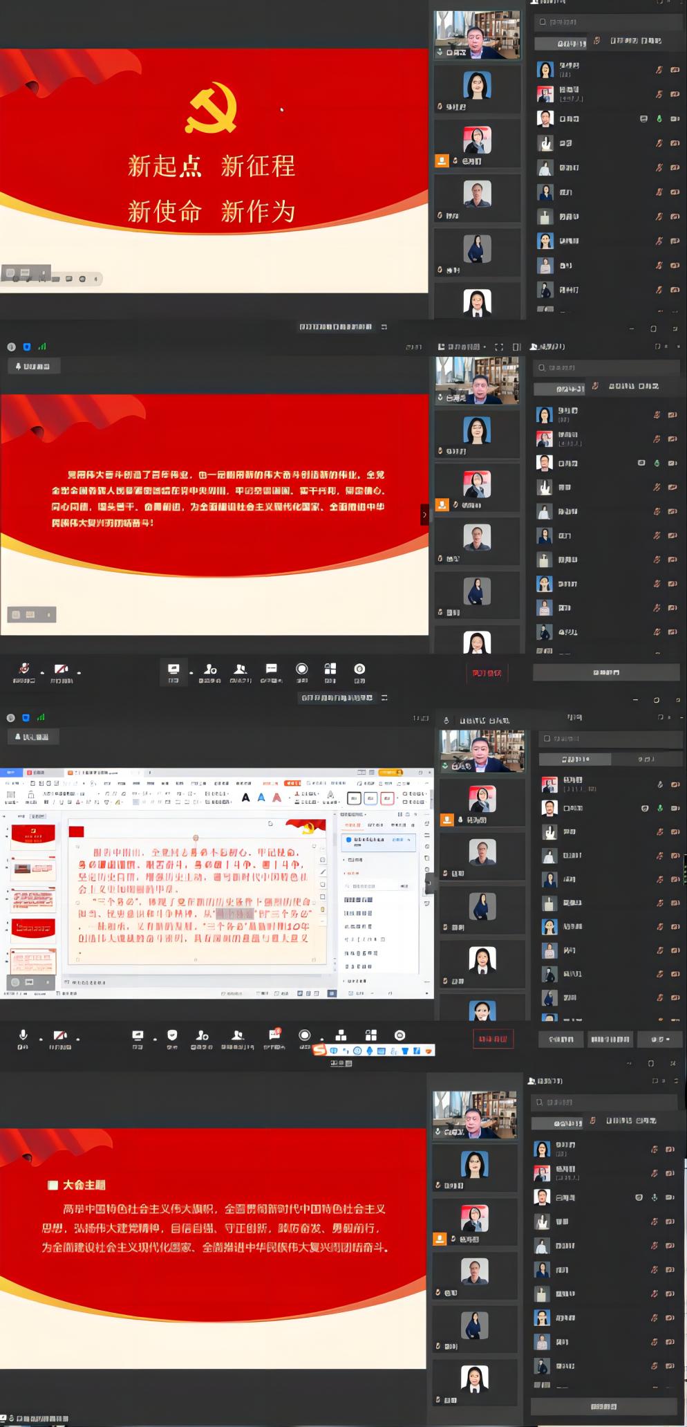 第一阶段,学院党委委员白海龙副书记为全体支部成员作了主题是“新起点 新征程 新使命 新作为”的二十大专题学习党课。白书记分别从“过去五年的工作和新时代十年的伟大变革”、“新时代新征程中国共产党的使命任务”、“推进国家安全体系和能力现代化,推动构建人类命运共同体”等十五个方面,结合yl官网学生工作实践和当前疫情防控工作,详细全面的给全体支部党员上了一堂生动的党课,党员教师收获很大。